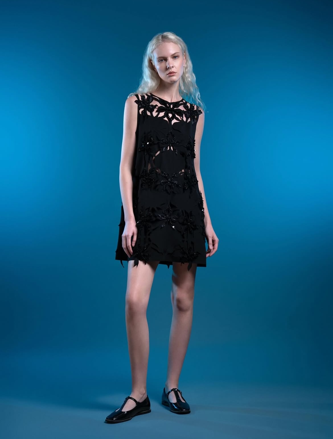 پیراهن تنه زنبوری کل بنفشه و پولک مشکی